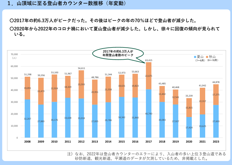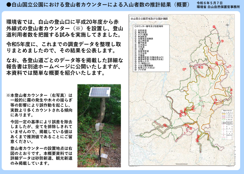 環境省のHPより登山者カウンターの設置情報もあげられています。