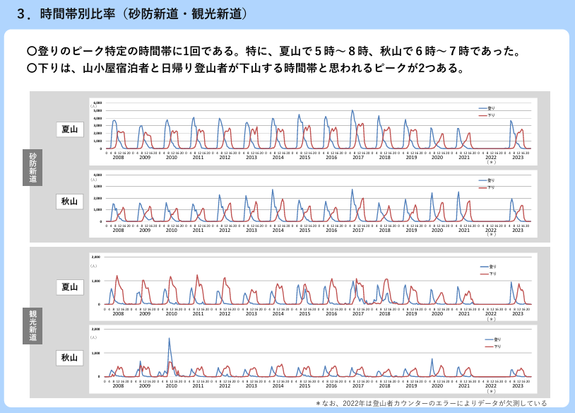 ・登山者が多く登る週間の確認